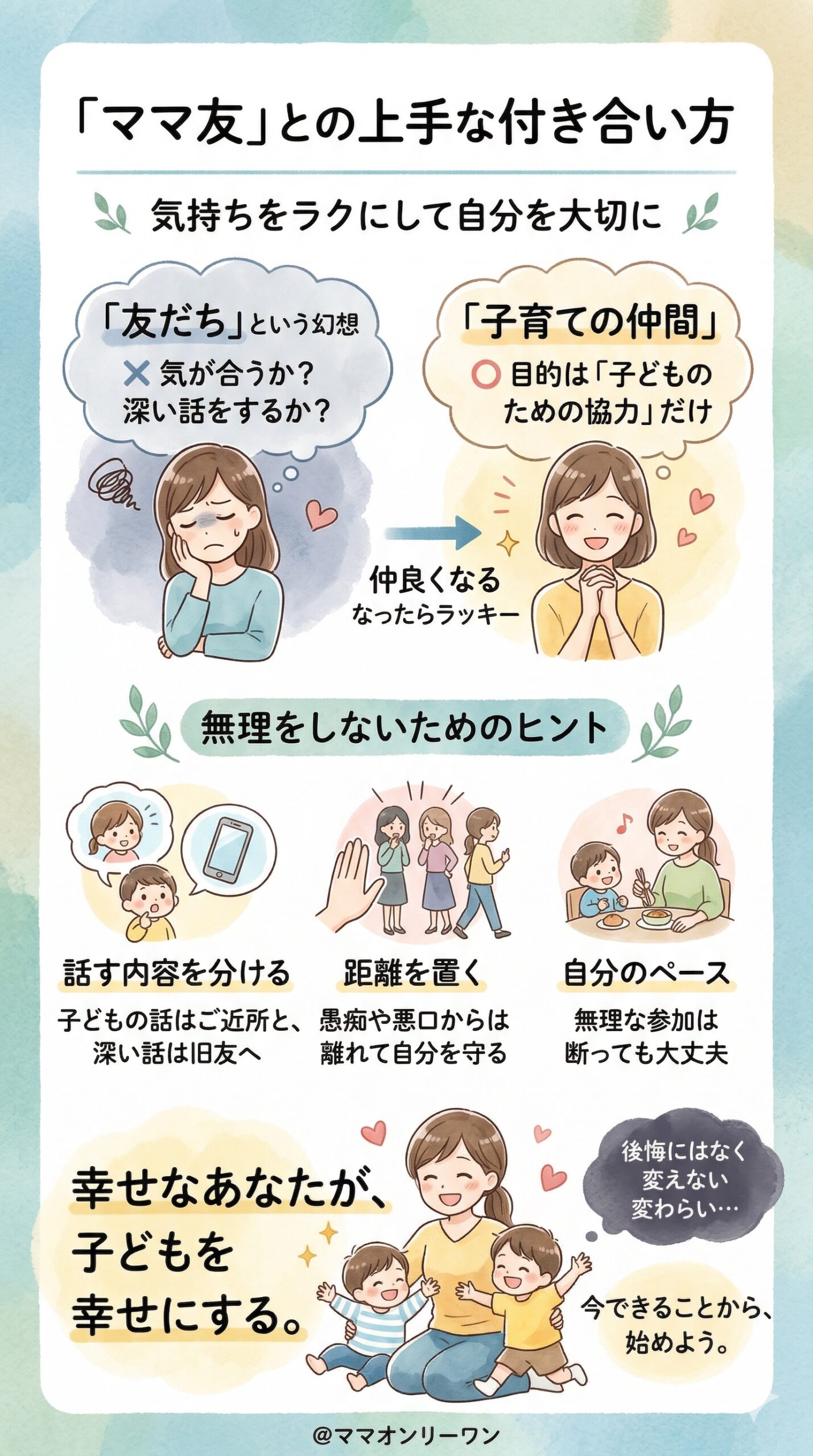 | 気にしない考え方 | 「友だち」ではなく「子育て期間の仲間」という感覚でOK |
