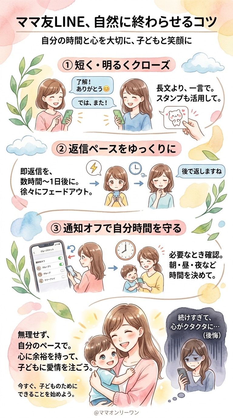 「早く返さなきゃ」「間が空くと浮いて見えるかも」というプレッシャーが積み重なり、スマホを開くのが怖くなった——そういうママはたくさんいます。