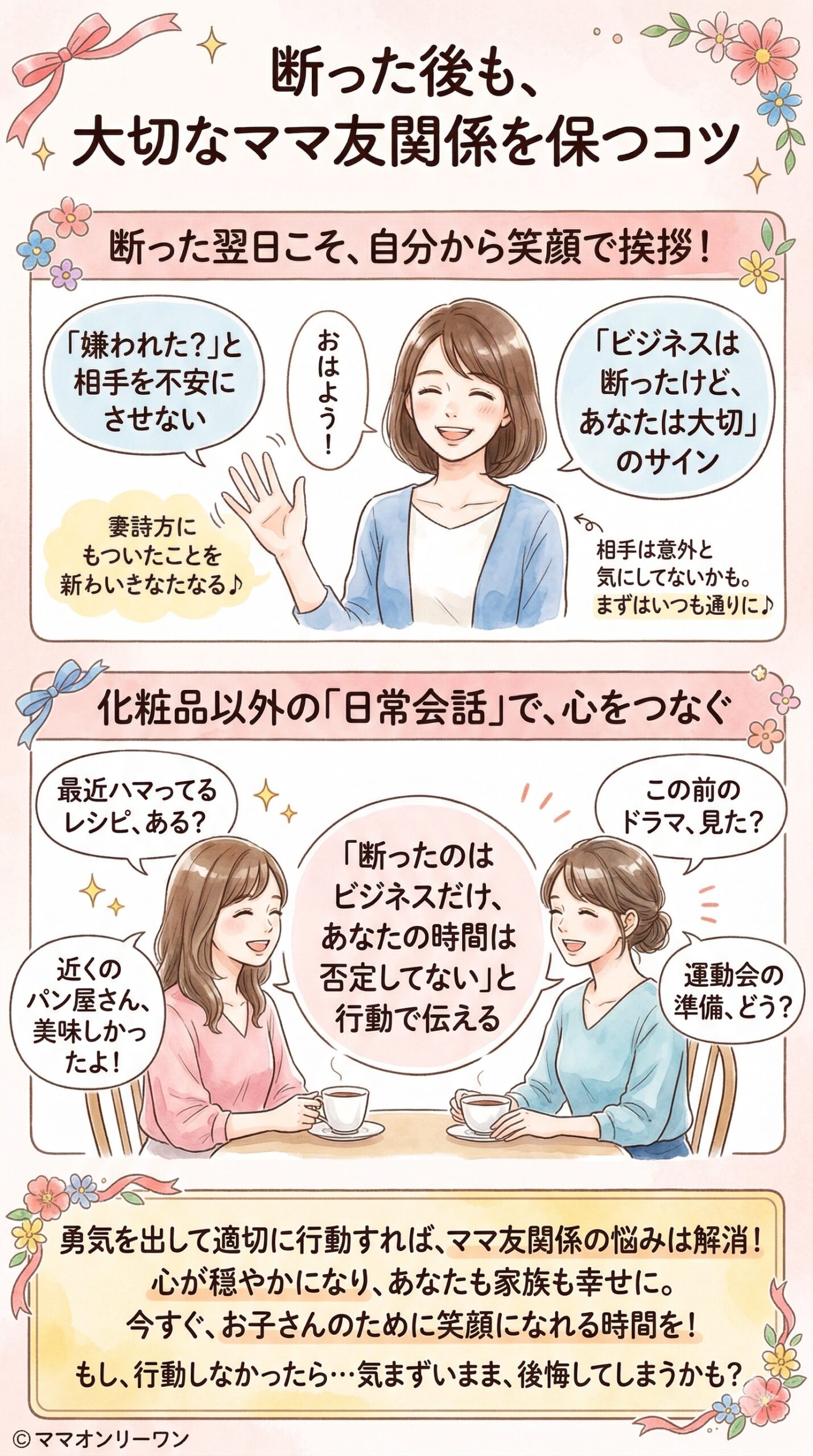 まとめ:ママ友から化粧品勧誘を断る方法|関係を壊さない断り方例文