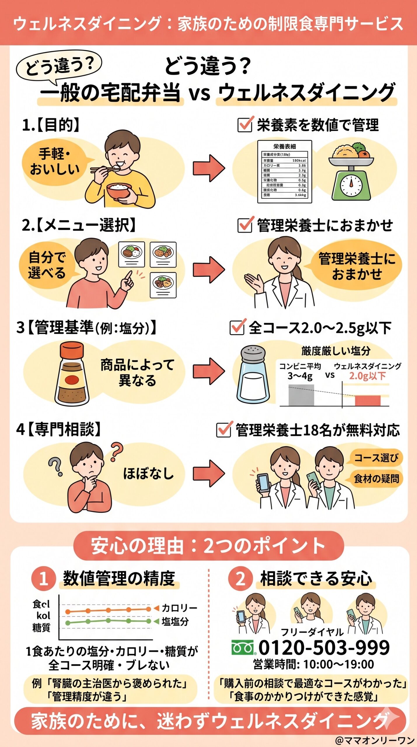 制限食が必要な状況にある家族がいるとき、そのサービスの専門性が「信頼できるかどうか」に直結します。普通の宅配食とは出発点が違うサービスだということを、まず頭に入れておいてください。