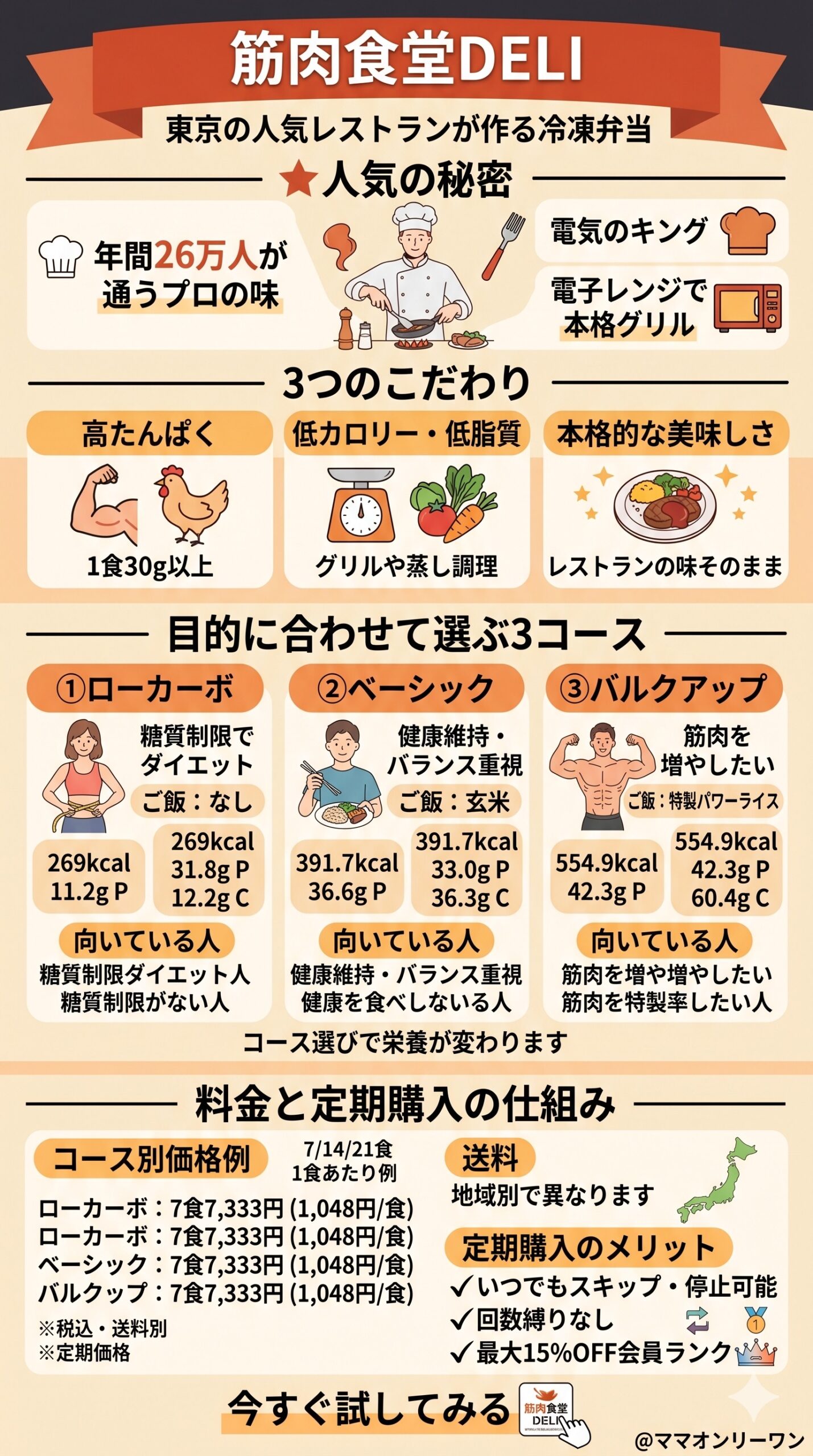 「名前はかっこいいけど、要するに何なの?」という疑問から始めましょう。筋肉食堂DELIは、東京の人気レストランが作る冷凍弁当の宅配サービスです。電子レンジで温めるだけで、高たんぱくなプロの味が食卓に届きます。