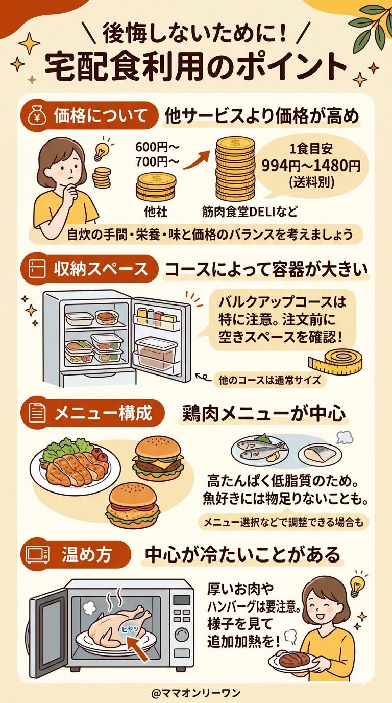 宅配弁当を複数比較してきた経験から言えるのは、筋肉食堂DELIは合う人にとってはまじで手放せないサービスだということ。ただ、合わない人にとっては「なんか違う」で終わるケースもあります。