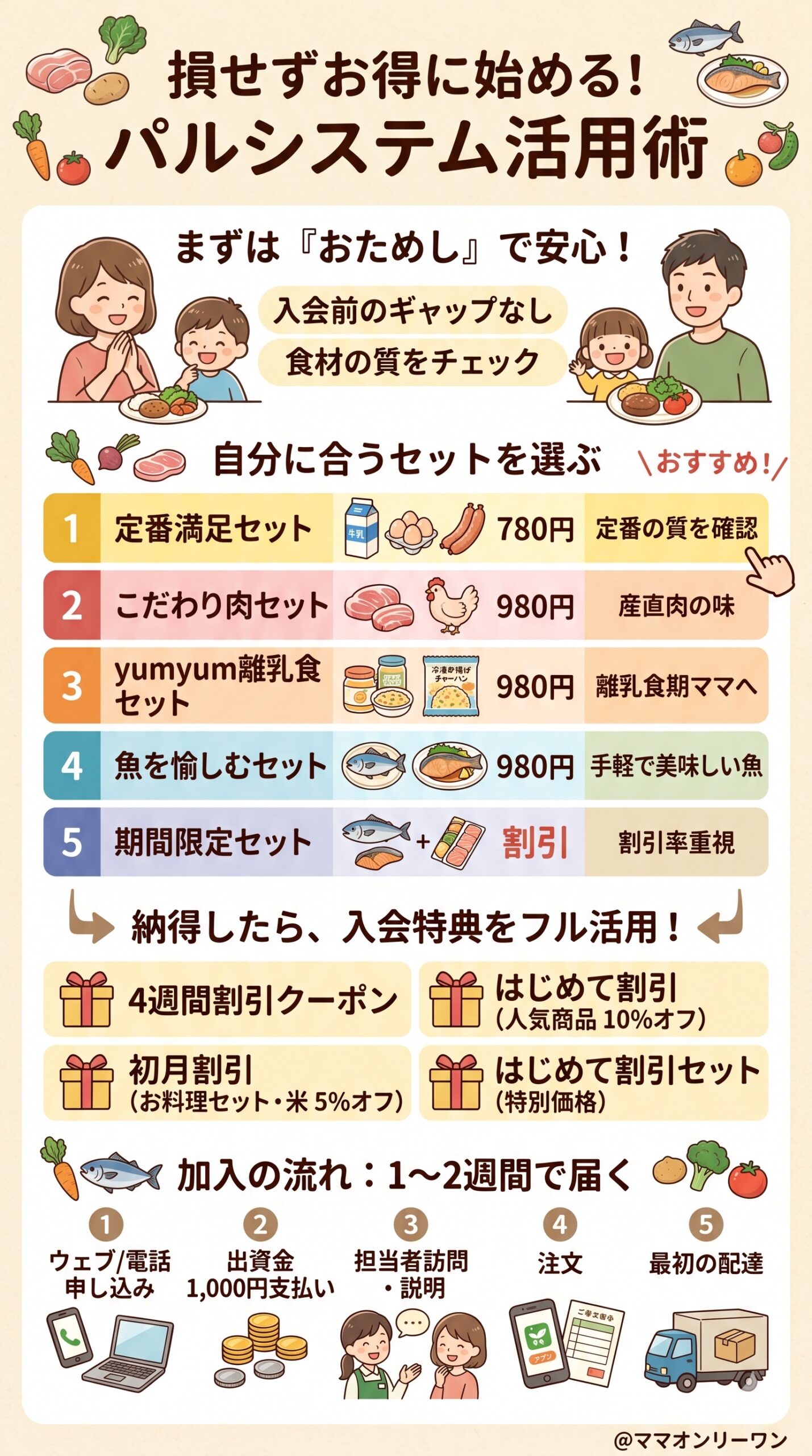 まず780円のおためしセットから試してみることが、一番後悔のない始め方です。合わなければそこで終わりにすればいいです。合ったなら、それは家族の食卓にとって本当に素敵な変化の始まりになります。