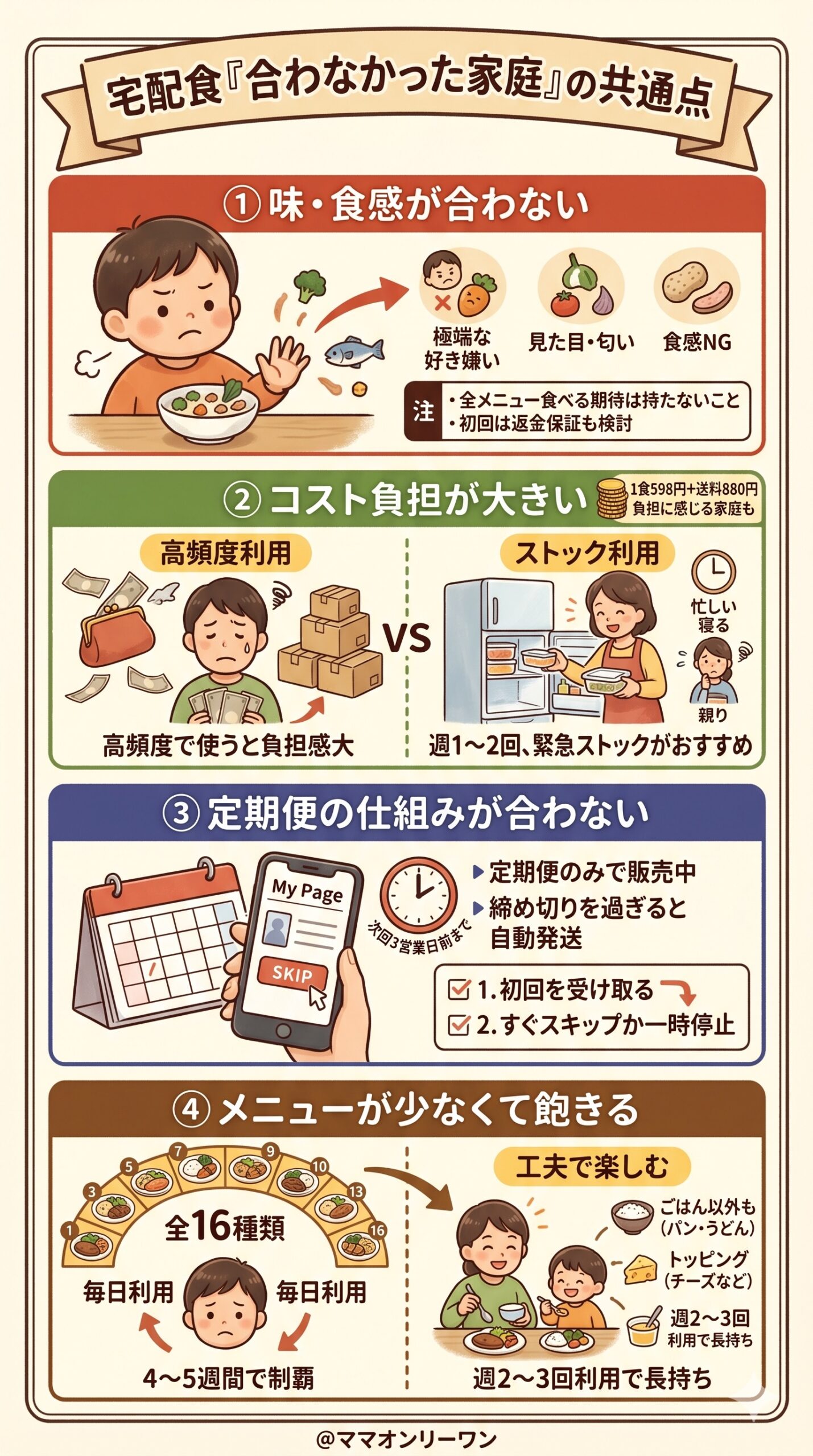 栄養士監修・ハウス食品グループが運営という土台のしっかりしたサービスを、本当に自分の家庭で使うべきか。ここで確かめてから動いてもらえれば、契約後の後悔はかなり減るはずです。