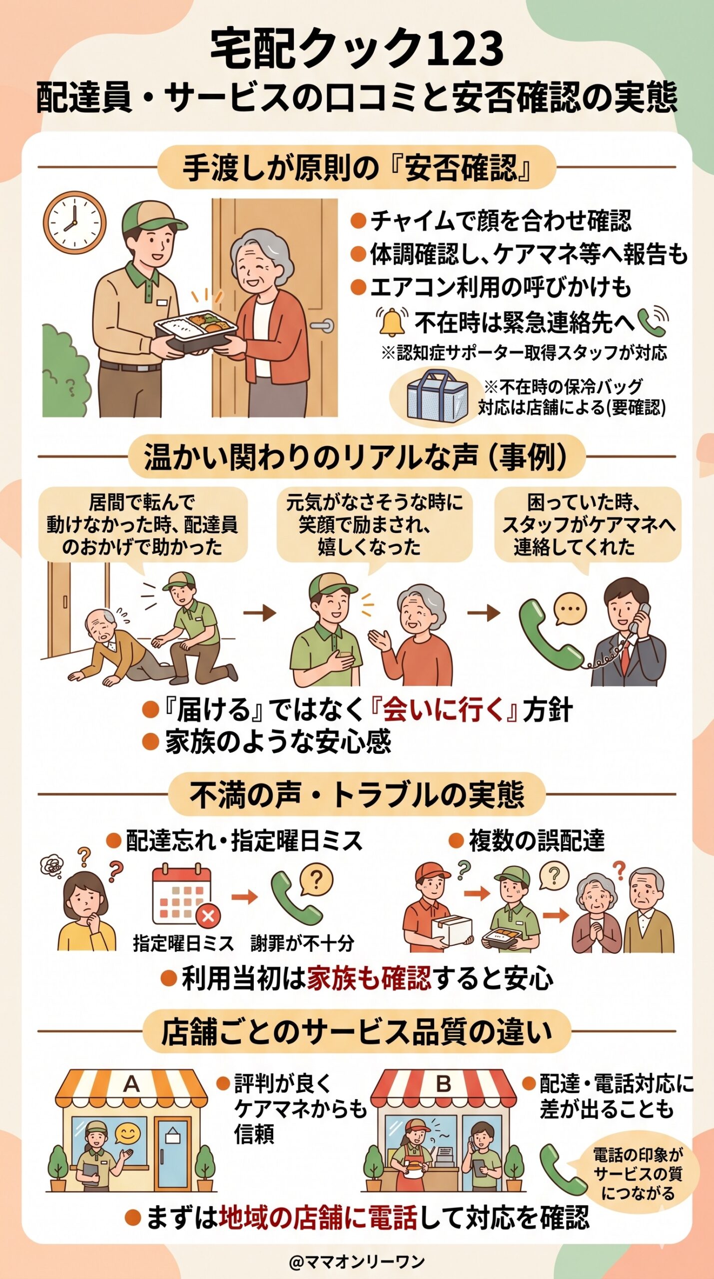 | 配達時間が読めない | 利用店舗に「毎日だいたい何時ごろに来るか」を事前に聞いておくと安心 |
