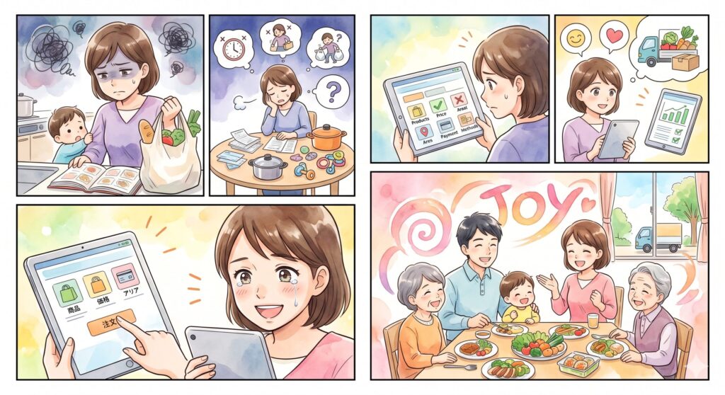 「生協って難しそう」と思って二の足を踏んでいた方が、実際に使い始めると「なんで今まで迷ってたんだろう」と感じるケースが多いです。最初の手続きを乗り越えれば、あとは注文するだけのシンプルな流れです。
