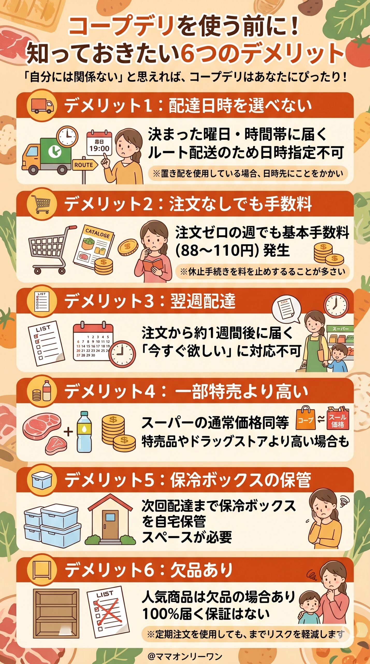 • コープデリが向いている人:共働きで買い物・料理の時間を減らしたい/重い荷物を運ぶのがしんどい/離乳食・幼児食・子育て中で余裕がない/スーパー感覚でまとめて揃えたい