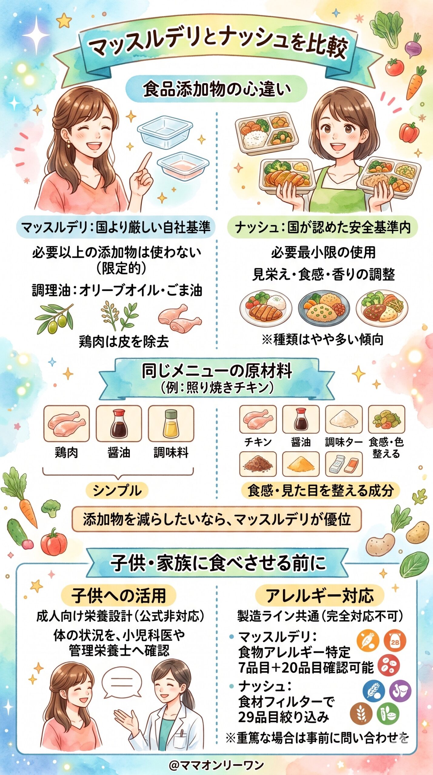 | 食材の傾向 | 鶏肉・白身魚が続いても大丈夫 | 100種類以上から毎回選びたい |
