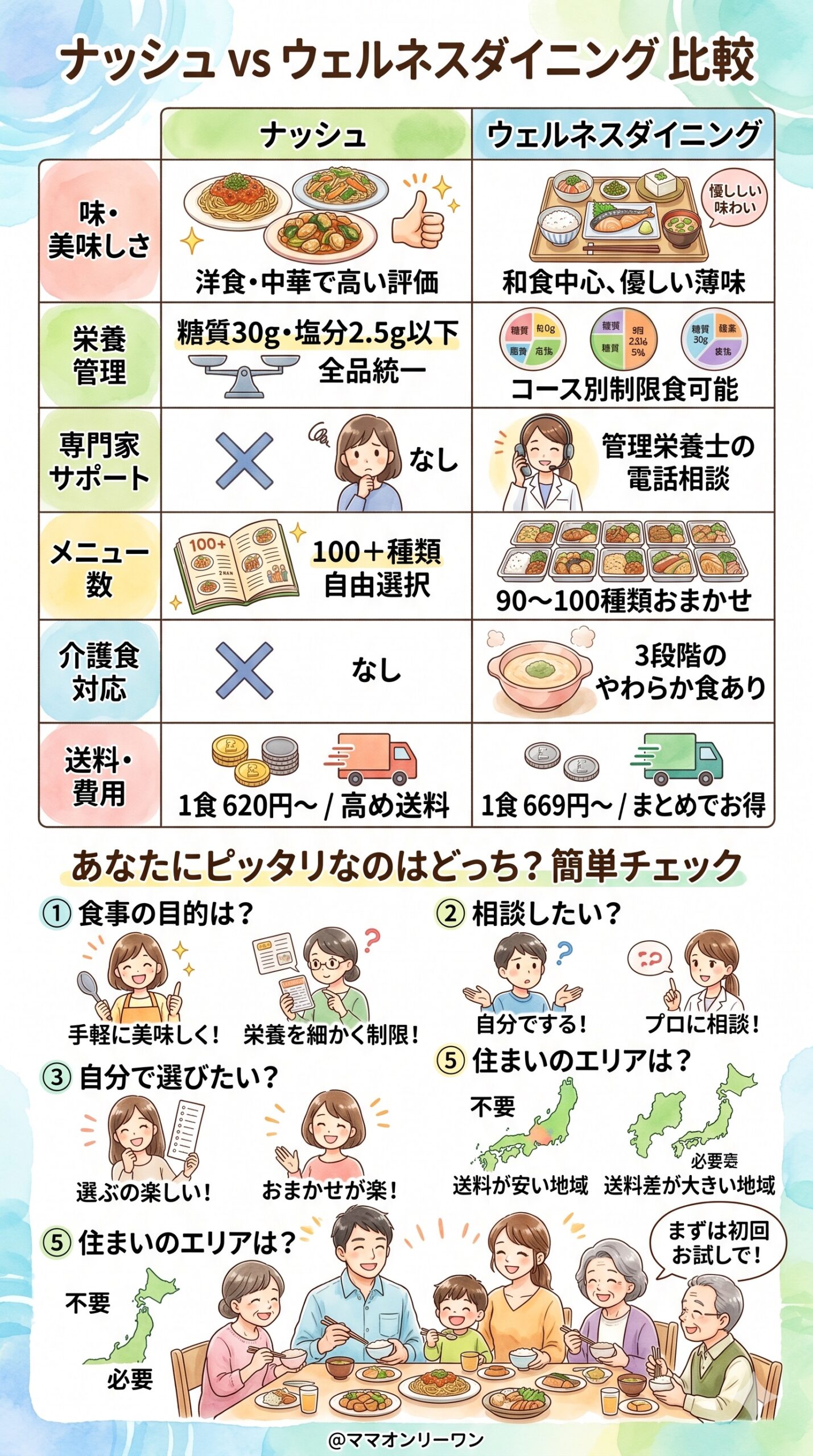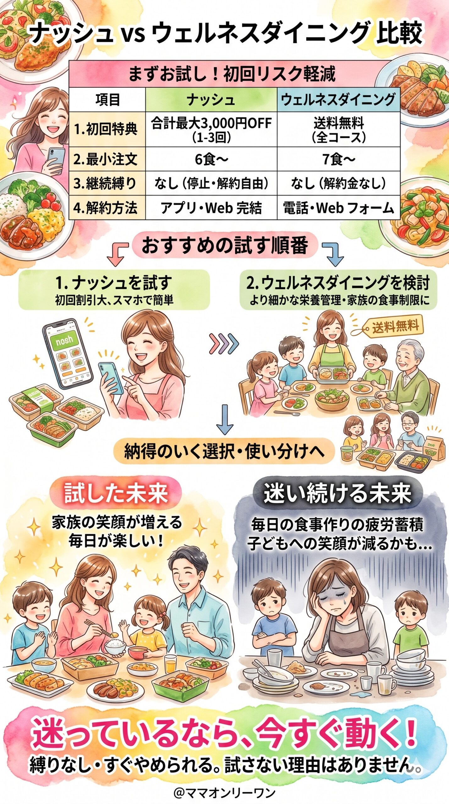 「ナッシュとウェルネスダイニング、どっちが家族に合うんだろう」――その疑問、ちゃんと答えます。