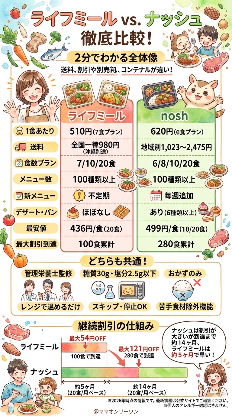 | 比較ポイント | ライフミール | ナッシュ |