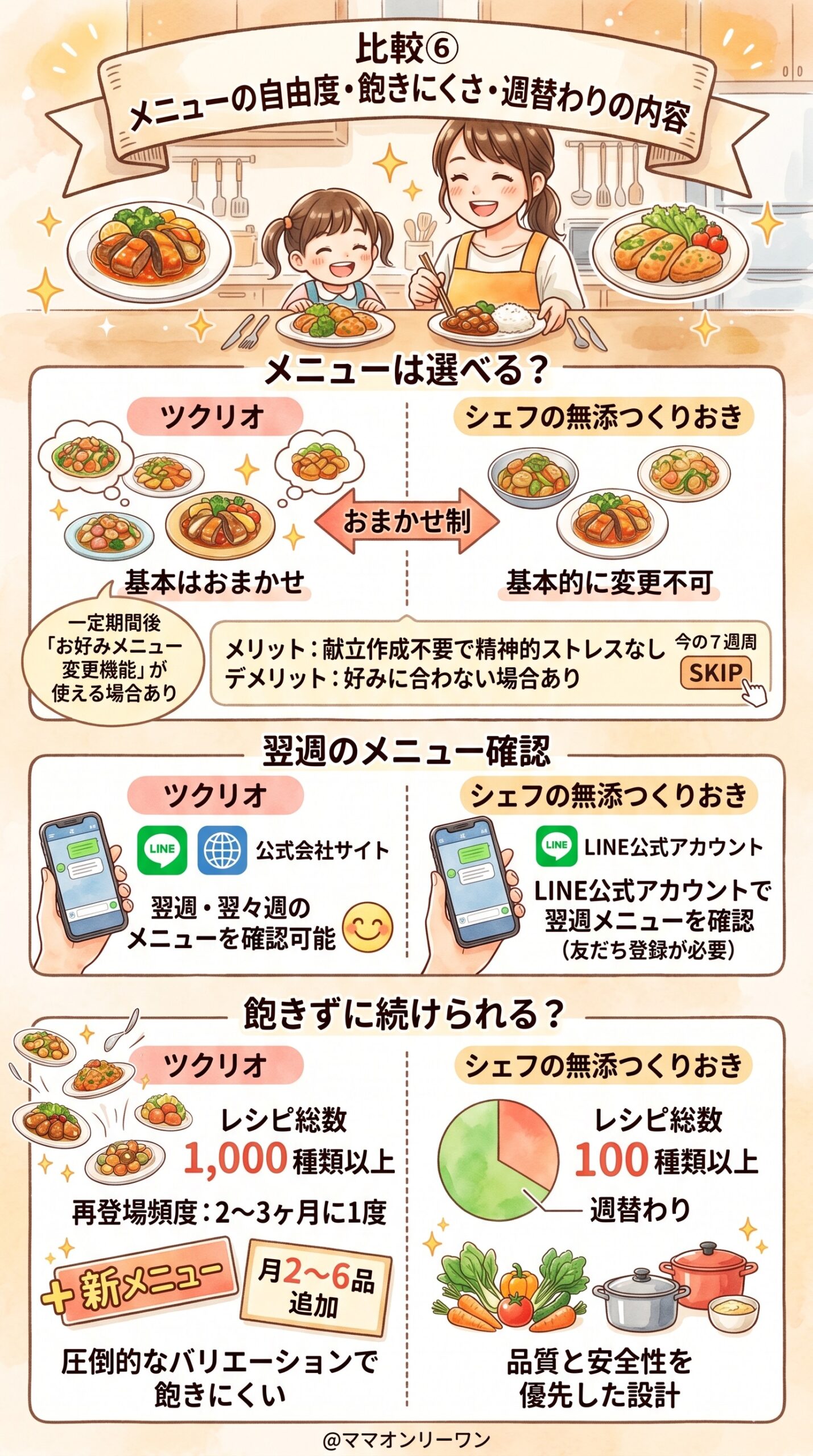 比較⑥メニューの自由度・飽きにくさ・週替わりの内容