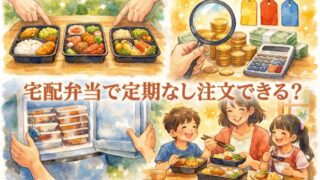家族向けの宅食 宅配弁当で定期なし注文できる?都度購入OKサービスの比較と後悔しない選び方のコツ 宅配弁当を定期なしで試したい方へ。解約不要・都度購入OKのサービスを比較し、送料込みの実質料金・選び方のポイントを解説。1回だけ注文して失敗しない方法がわかります。 2026.04.11 家族向けの宅食